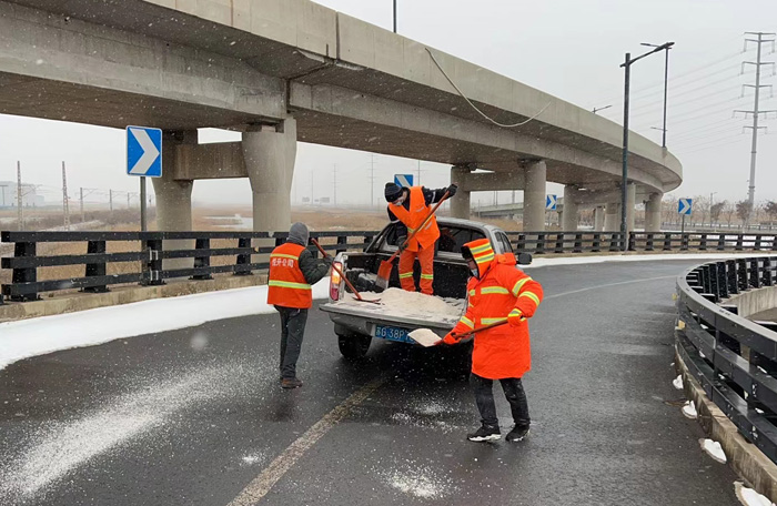掃雪除冰工作刻不容緩。按照悅升公司掃雪除冰工作任務(wù)分配,環(huán)衛(wèi)分公司負(fù)責(zé)228徐新路到環(huán)保大道路段掃雪除冰任務(wù)。該區(qū)域內(nèi)因含有張圩互通大橋,光橋梁匝道、輔道就有8條,上下路段非常陡滑,給掃雪除冰工作帶來極大挑戰(zhàn)。但該公司人員堅決認(rèn)領(lǐng)任務(wù),沒有任何退縮。他們采取車輛緩慢行駛方式,橋梁陡峭路段就使用人工用鐵锨一锨一锨端灑的方式進(jìn)行。雖然寒風(fēng)雪天中,不停的作業(yè)使胳膊潑灑的極其酸累,但大家不辭辛苦,沒有一絲怨言,全體人員全部值守在崗,奮戰(zhàn)在掃雪除兵工作第一線,僅2月4日一天,就潑灑融雪劑7車近30噸,為打贏掃雪除冰功堅戰(zhàn)打好堅實基礎(chǔ)。(晁華)