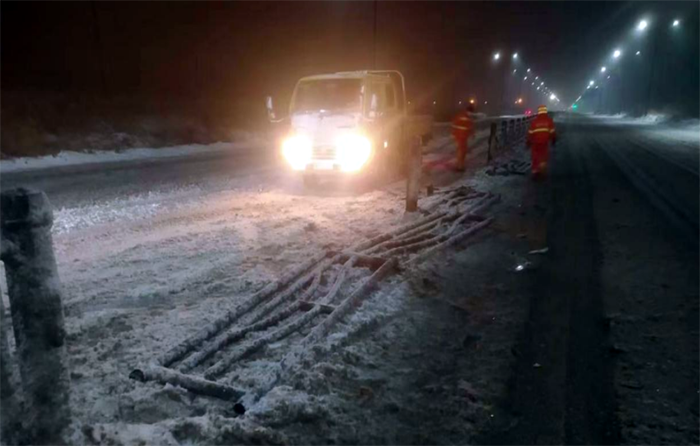 市政分公司根據公司安排,負責融雪劑裝卸工作,從2月3日下午到4日上午,市政分公司累計裝卸融雪劑已達150余噸。該分公司在做好保障融雪劑裝卸作業(yè)的同時,抽調4名精兵強將,處理因大雪導致的道路交通事故應急處置4起,應急處理道路護欄11節(jié),約38米,防止交通事故二次發(fā)生。在5日凌晨更是經理盧正楊帶領10名黨員先鋒突擊隊,支援重點道路徐新路的融雪劑拋灑作業(yè),僅靠雙手揮著鐵锨,通宵奮戰(zhàn),迎難而上,高質高效完成融雪劑拋灑作業(yè)路段。(李濤)