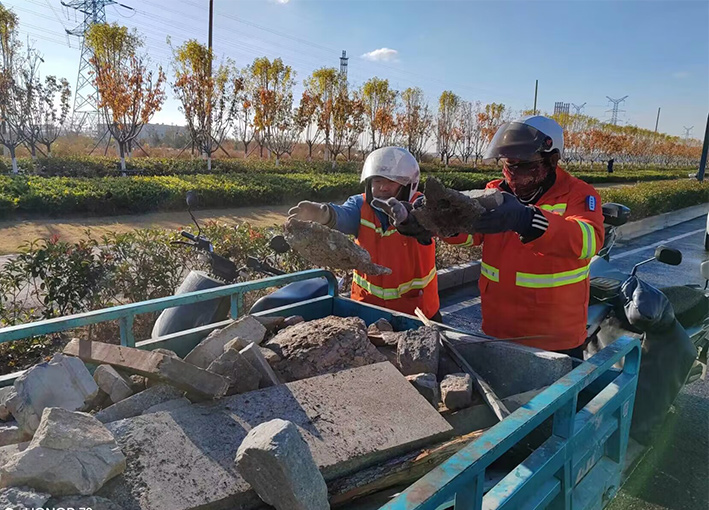 入冬以來,該分公司園區(qū)兩個(gè)班組35名保潔衛(wèi)士無懼徐圩冬季寒風(fēng)浸透身體,身穿橙色工作服,每天持續(xù)工作達(dá)6個(gè)多小時(shí),不間斷對園區(qū)近20多條道路進(jìn)行巡查,轉(zhuǎn)運(yùn)打包各類垃圾高達(dá)400余包,清掃輔道岔路口石子,泥土50多處,用辛勤勞作汗水彰顯徐圩悅升人敬業(yè)勞動(dòng)風(fēng)采。
