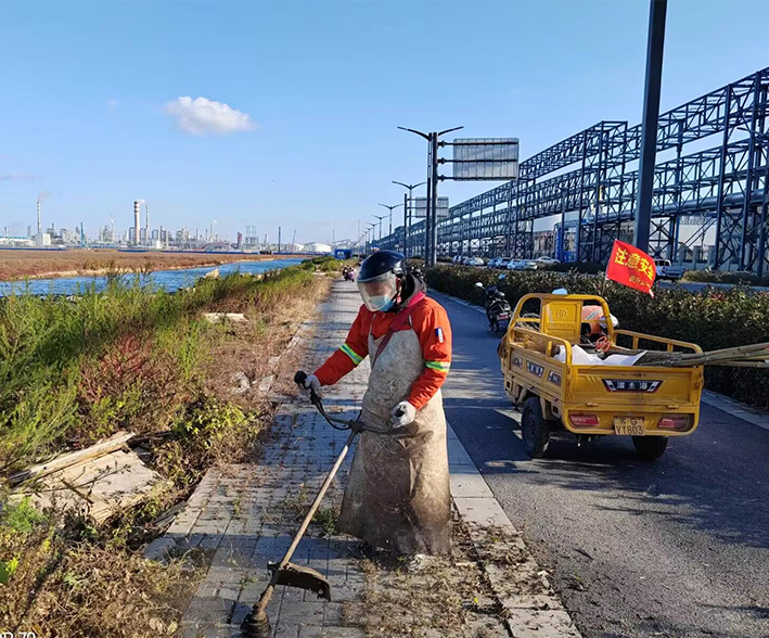 及時(shí)配合徐圩城建處理陬山路、石化七消防通道等路段施工產(chǎn)生動(dòng)態(tài)各種垃圾20多車,再次轉(zhuǎn)運(yùn)陬山路主道兩側(cè)綠化帶中石塊2000多斤。針對園區(qū)建設(shè)發(fā)展情況,序時(shí)推進(jìn)石化五道,四道樣板路工程打造,組織人員突擊清理輔道雜草近1000余米長,撿拾管廊下各種垃圾300余袋。勞動(dòng)現(xiàn)場,黨員生產(chǎn)骨干薛明柱、朱海勇等同志先鋒示范閃亮道路最前沿,用實(shí)際行動(dòng)保障園區(qū)美麗環(huán)境。