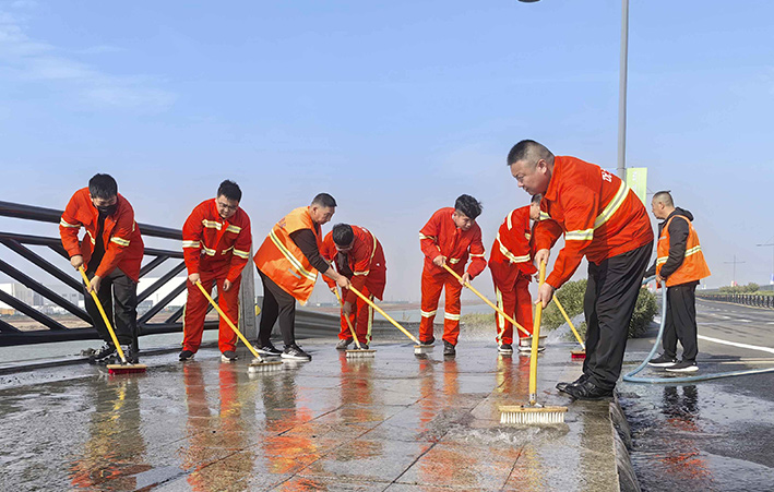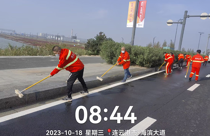 10月18日上午,悅升公司機(jī)關(guān)管理人員深入一線對(duì)海濱大道南卡口至疏港大道路段及橋梁路緣石進(jìn)行強(qiáng)化清洗,用實(shí)干打好賽道保障“戰(zhàn)役”。工作現(xiàn)場(chǎng),一臺(tái)高壓沖洗車(chē)先行對(duì)賽道路緣石和橋梁輔道進(jìn)行高壓沖洗,隨后,工作人員一字排開(kāi),用毛刷不斷擦洗地面頑固臟污,大家斗志昂揚(yáng)、步步推進(jìn),做到?jīng)_洗無(wú)漏洗、無(wú)死角,最后再用灑水車(chē)清洗一遍。經(jīng)過(guò)近三小時(shí)清洗,高標(biāo)準(zhǔn)完成路源石和橋梁輔道保潔清洗工作,有效提高了賽道潔凈度。截至目前,已完成該路段2000多米路緣石清洗工作。
