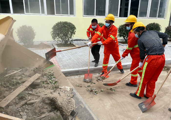 面對(duì)繁重工作量,為了切實(shí)加快施工進(jìn)度,悅升公司黨員干部主動(dòng)請(qǐng)纓要求到一線與大家共同奮戰(zhàn)。“不要急,要嚴(yán)格施工流程,確保工程質(zhì)量達(dá)標(biāo)……”該公司負(fù)責(zé)人馮如師邊說(shuō)邊邊將工程垃圾裝運(yùn)到車上。截止當(dāng)前,該公司班子成員帶領(lǐng)機(jī)關(guān)工作人員堅(jiān)守陣地,持續(xù)工作了17日。為確保高質(zhì)高效完成各項(xiàng)工程任務(wù),大家“白加黑”晝夜不間斷的全力奮戰(zhàn),已完成瀝青路面攤鋪1.7萬(wàn)m2、園路鋪設(shè)3000m2、路緣石安裝1660m、樹池圍牙砌筑1136m、更換下水道篦子130塊……各項(xiàng)工程任務(wù)完成接近尾聲。