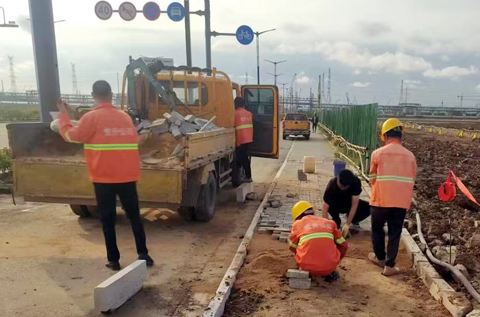 走進(jìn)新區(qū)石化十路一處施工現(xiàn)場,“市政尖兵們”正井然有序地對因施工車輛碾壓造成人行步道地磚破損處進(jìn)行修復(fù)。人工拆除原受損人行道地磚,對缺失路牙石進(jìn)行補(bǔ)缺并壓實(shí)整平基礎(chǔ)、定位放線、更換面包磚和盲道磚,經(jīng)過2個(gè)多小時(shí)緊張施工,原坑坑洼洼的路面,取而代之是敞亮平整。多日來,默默無聞的市政“尖兵”們用勤勞的雙手加速施工進(jìn)程,用實(shí)干詮釋徐圩悅升市政人的新風(fēng)采。目前,已完成徐圩大道、云河路等10條主次干道兩側(cè)人行道集中巡檢修補(bǔ)工作,共整治32處,更換面包磚約96平方米、路緣石33米、盲道地磚11平方米。