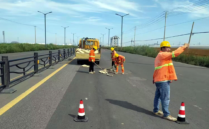 連日來,市政分公司組織人員深入一線,加班加點對賽事路線內的市政設施情況進行全面摸底排查,對巡查發(fā)現(xiàn)的市政道路病害,有針對性地制定設施維修方案,精準定向整治。 截止日前,該公司全體人員加班加點奮戰(zhàn)在一線,有序推進各項維修工作進程。當前,已完成海濱大道、港前大道等多條瀝青路面維修186平方米、道路隔離欄更換維修86米;石化七道、石化三路等路段完成142平方米人行道磚鋪設、28米路緣石和73個擋車石維修工作;在疏港大道與海濱大道交叉口道邊加裝波形護欄220米;疏港大道、石化七道、石化三路更換維修雨排水管道168米;更換港前大道、石化區(qū)域內鑄鐵檢查井蓋19個。