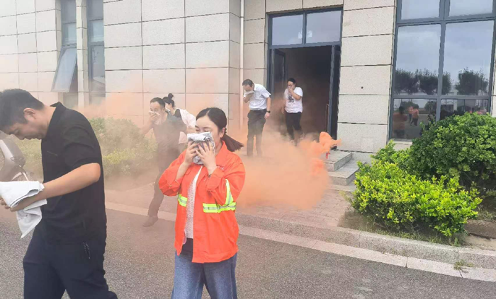 本次演練模擬公司辦公樓三樓電纜井因電路故障引發(fā)火情組織職工開展應(yīng)急疏散。 “起火啦!”15時許,辦公樓三樓一電纜井內(nèi)突然涌出滾滾濃煙。臨近人員發(fā)現(xiàn)著火后,第一時間使用滅火器進(jìn)行撲救。濃煙觸發(fā)自動報(bào)警裝置,消防控制室值班人員接到警報(bào)后,立即通知志愿消防隊(duì)伍趕赴現(xiàn)場撲救,并撥打報(bào)警電話,向應(yīng)急指揮部報(bào)告。公司應(yīng)急指揮部立即啟動應(yīng)急預(yù)案,滅火搶救組、安全救護(hù)組、緊急疏散組等應(yīng)急小組隨即到位,有條不紊開展滅火、疏散等工作。消防救援隊(duì)伍到達(dá)現(xiàn)場后,接過現(xiàn)場指揮權(quán),開展滅火救援。安全搶救組搜索受傷人員,并對受傷人員簡單急救后送往醫(yī)院進(jìn)行治療,緊急疏散組立即組織辦公大樓人員,用濕毛巾捂住口鼻從應(yīng)急通道撤離。10分鐘后,險情排除,應(yīng)急救援結(jié)束。最后,組織部分人員開展滅火實(shí)操演練